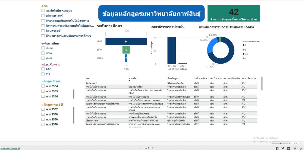 • POWER BI ข้อมูลหลักสูตรมหาวิทยาลัยกาฬสินธุ์